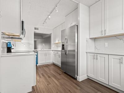 Beautiful all-ages condo in the desirable Pines at Boca Barwood featuring a beautifully updated kitchen, vinyl flooring throughout. Spacious layout with two large bedrooms, each with its own ensuite bathroom. The primary suite offers balcony access and a generous walk-in closet. Large Screened in patio with Canal views. Enjoy the convenience of a full-size washer and dryer, covered parking, and a building elevator. Relax with tranquil canal views and take advantage of the well-maintained grounds. The community offers exceptional amenities, including a clubhouse, fitness center, pool, gym, and more. Cable, building insurance and water included in the condo fee. Zoned for excellent schools. No rentals allowed.