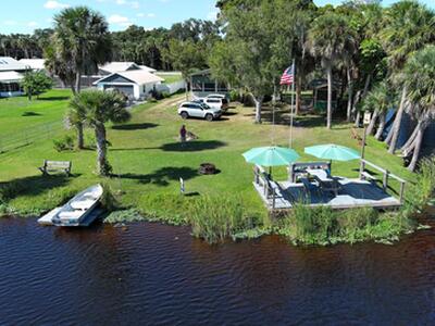 RIM CANAL - LAKE OKEECHOBEE ACCESS. Relaxing on the porch, you'll never tire of the birds-eye view of the 8' deep canal on one side and the 24' deep Rim Canal straight ahead (just a stone's throw to the Fisheating Creek Lock, The landscape offers shade trees, exotic banana trees, flowering shrubs and wildflowers that attract butterflies. The Leucistic White Squirrels are truly a delight to watch them play. It's like a day in the park, but every day! Two large sheds offer ample storage including loft fishing pole holders. The roof is 2022, AC is 2020 w/10-yr warranty. This 2/2 DWMH has solid decking, an open floorplan and a sliding door to the screened porch. The gun safe, new riding mower, 12' rowboat, canoe, woodchipper and much more convey. If you're fishing in Lakeport, this is a catch